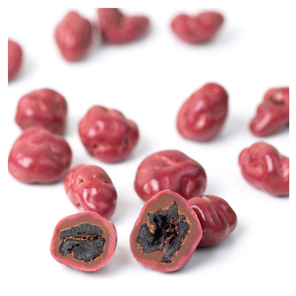Sauerkirschen umhüllt von dunkler Milchschokolade und Sauerkirschkuvertüre – das Naturerlebnis für Feinschmecker